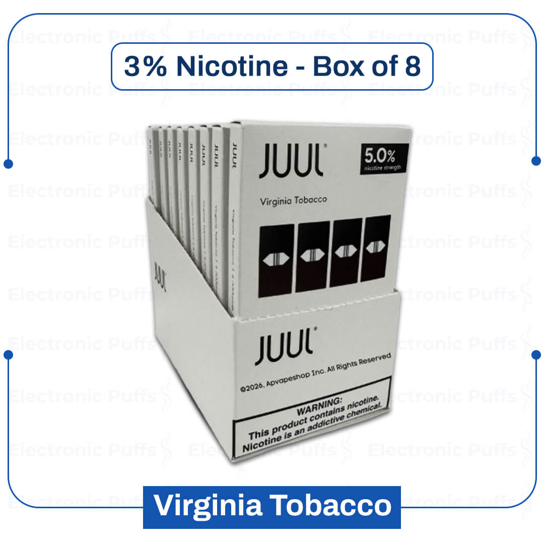 The Juul Virginia Tobacco Pods 5% – Box of 8 gives you great tobacco flavor. It has a smooth, rich taste. Each pod has 0.7ml of e-liquid. You get 200 puffs from each pod. The box of 8 provides more pods for you. Perfect for people who like classic tobacco. It works well with your JUUL device. Check out our Starter Kits to get started.