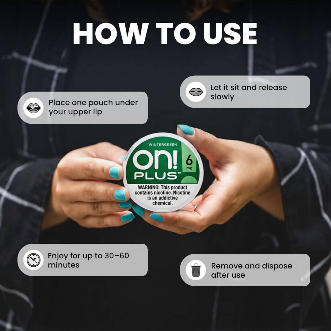 ON! Plus Wintergreen 6MG brings a cool and refreshing minty taste. The wintergreen nicotine pouches keep the flavor crisp and smooth throughout use.