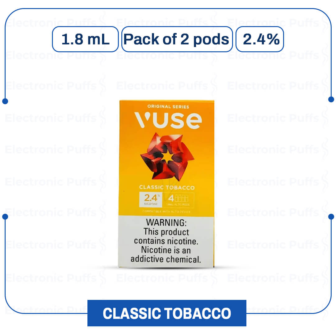 Vuse ALTO Classic Tobacco Pods deliver a bold tobacco taste. They offer lighter nicotine satisfaction. These pods are designed for the VUSE ALTO device.